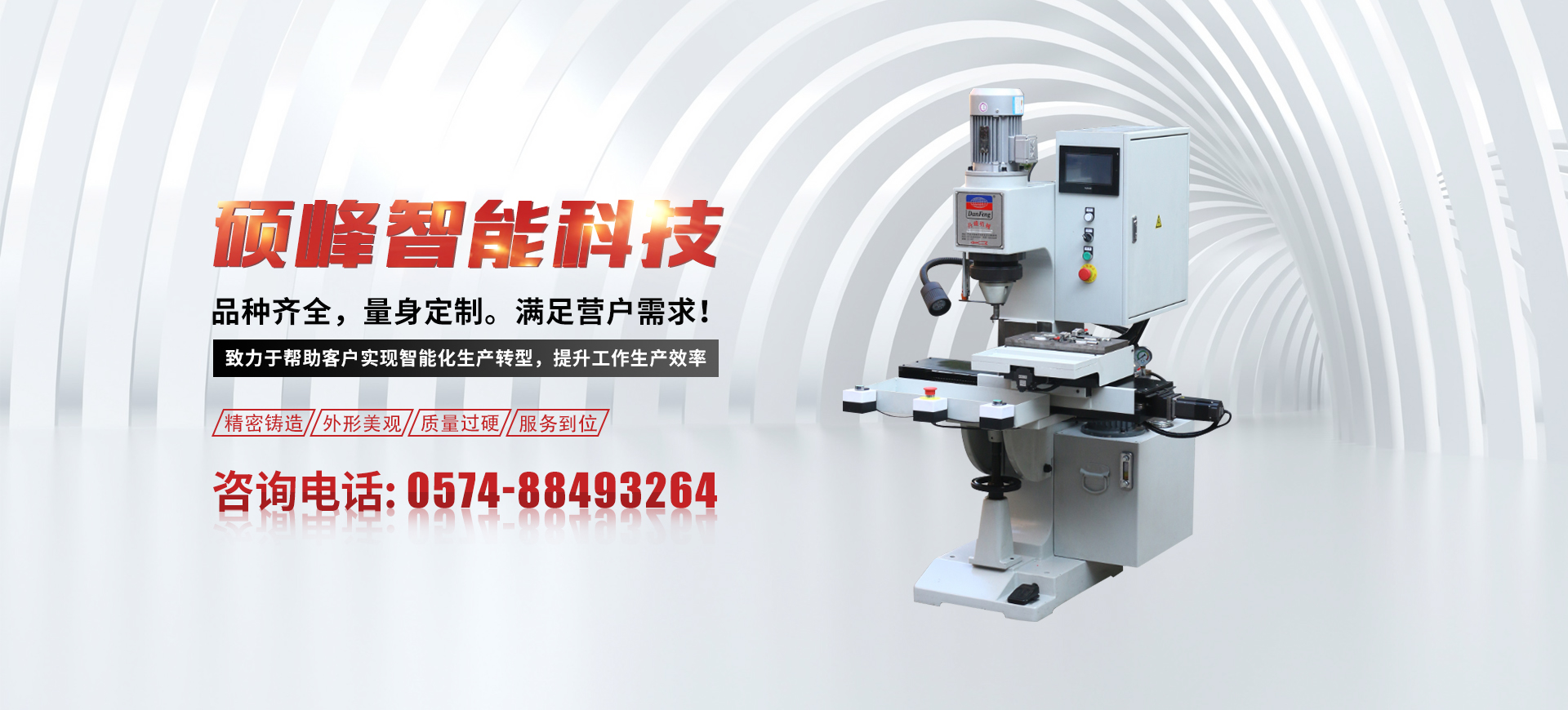 寧波市碩峰智能科技有限公司成立于2018年,坐落于寧波市鄞州區(qū)云龍工業(yè)區(qū)。公司主要從事于鉚釘機自動化設(shè)備及周邊設(shè)備的研發(fā)、生產(chǎn)、銷售與服務(wù)。公司擁有數(shù)控加工中心,數(shù)控龍門加工中心,數(shù)控車床加工中心,線切割,搖臂鉆,磨床,剪板機等各種大型加工設(shè)備,確保一體化生產(chǎn),嚴格把控質(zhì)量關(guān),憑借公司的實力、誠信以及產(chǎn)品質(zhì)量獲得了業(yè)界的普遍認可。